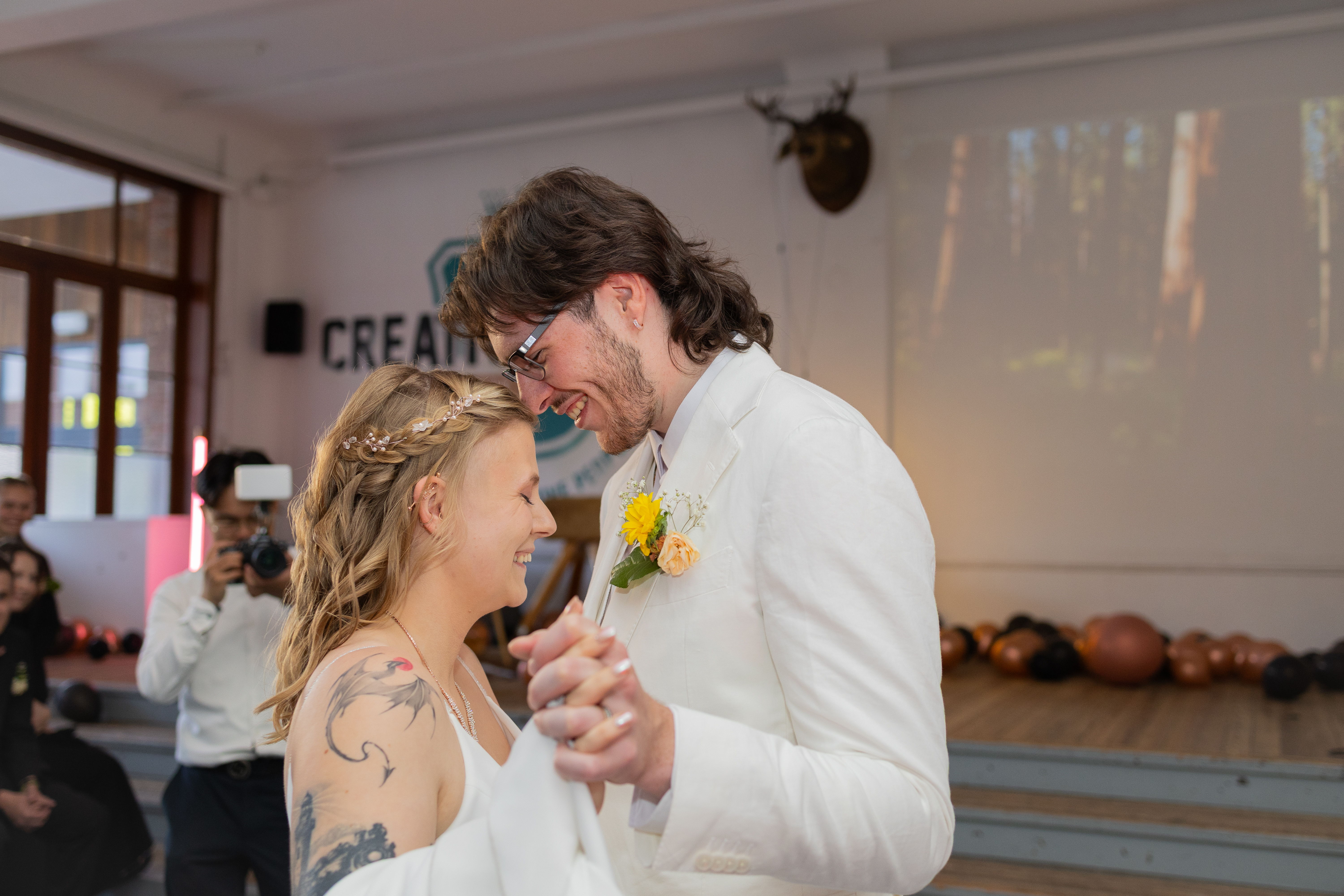 Op 9 mei 2025 sluiten ze elkaar officieel in de armen. In de gym van Thomas More Campus Kruidtuin. Exact op dezelfde plek waar hun verhaal begint en waar Evi sinds 2024 ook lesgeeft. "Ik zei tegen mijn opleidingsmanager: zou het niet grappig zijn moesten we trouwen waar het begonnen is, in de gym", vertelt Evi. "En hij is dat meteen beginnen te regelen!"